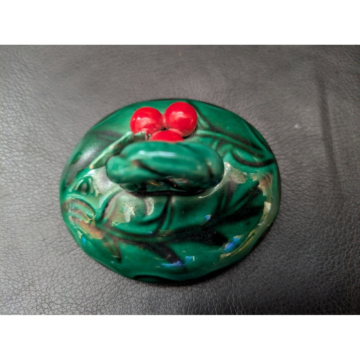 Vintage Céramique Houx Baie de Rechange Couvercle Vert Rouge Noël Vacances Décor