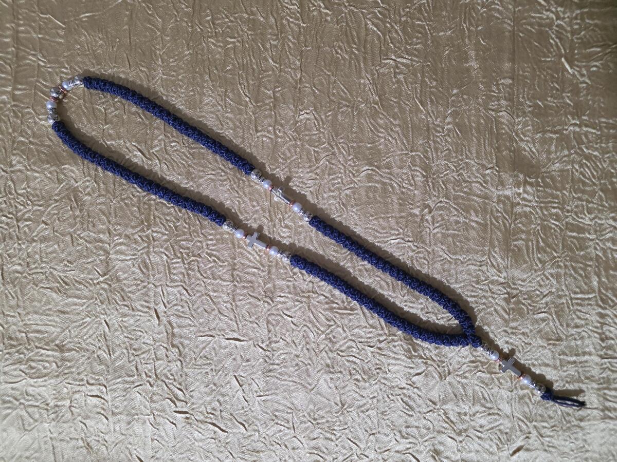 This is a handmade Christian Orthodox prayer rope, 100 knot prayer rope in blue color, crafted in the traditional way, using tightly woven waxed woolen cord. Designed for prayer, meditation and spiritual focus, it also serves as a meaningful religious accessory of thoughtful gift.