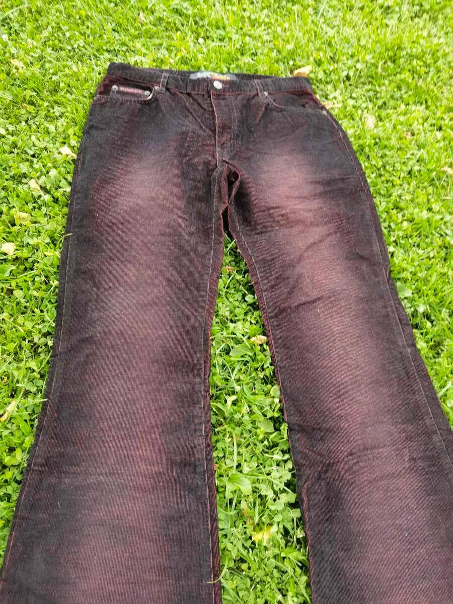 Bell bottom pants, made in the 1990's, velvet pants. They have never been worn, without damages of any kind. The pants are in dark gray to black color with faded areas. The pants are European women size No 31.