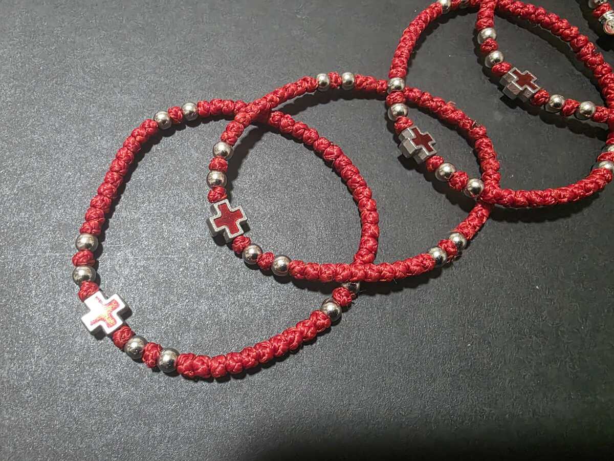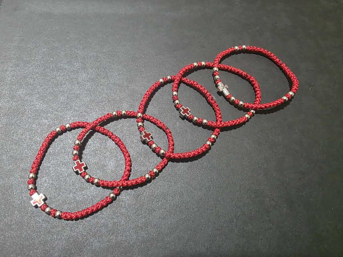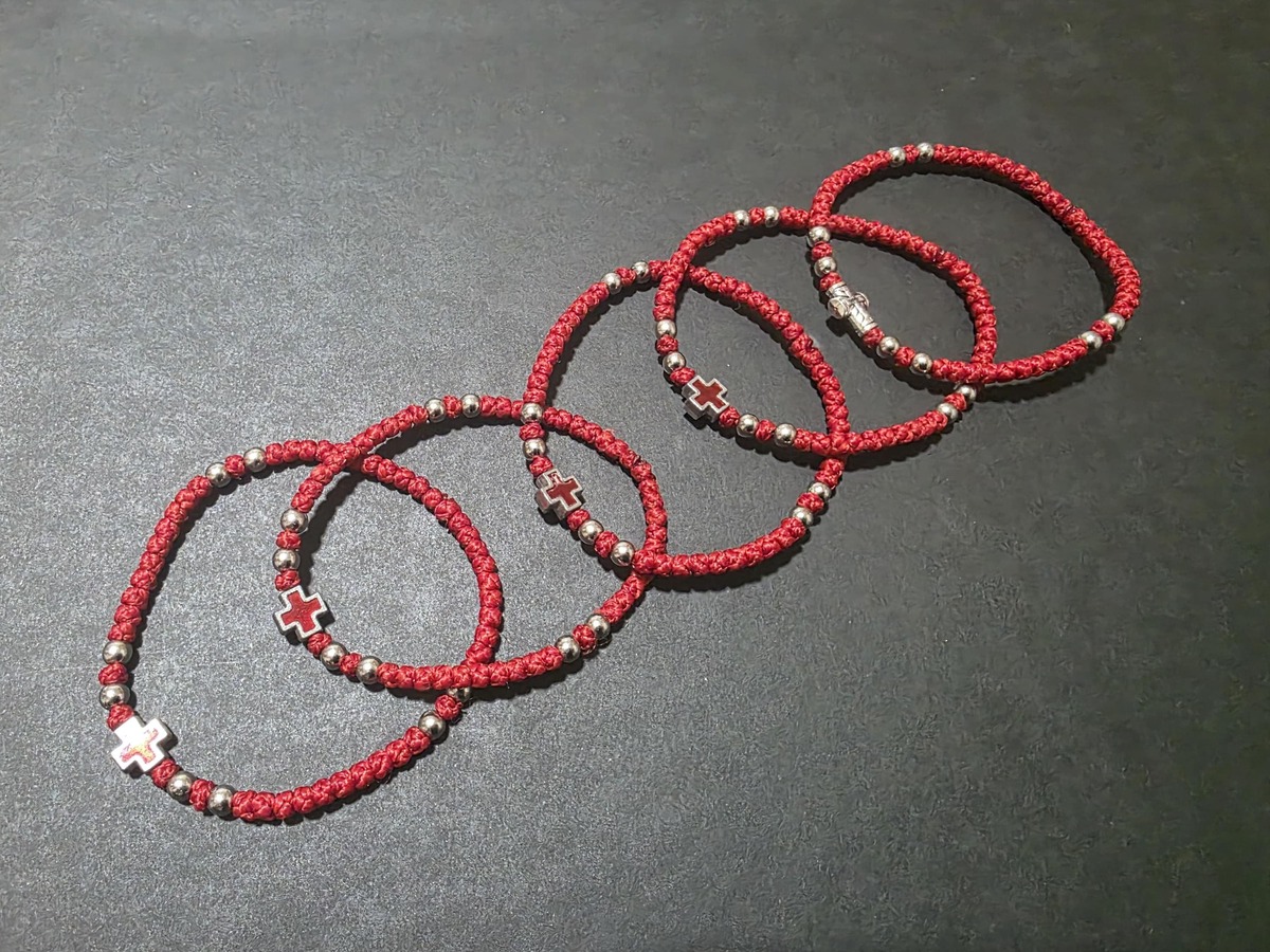 A handmade orthodox Christian prayer rope, bracelet prayer rope. It is a 52-72 thin knots bracelet in red color and extra decorated with silver color beads. The bracelets in our shop are made by priests from the churches in Ohrid, Macedonia, the Balkan's Jerusalem. Completely handmade thin knots every each of them finished with a prayer. The prayer rope is made of high quality waxed wool thread. The waxed thread ensures water resistance and durability.