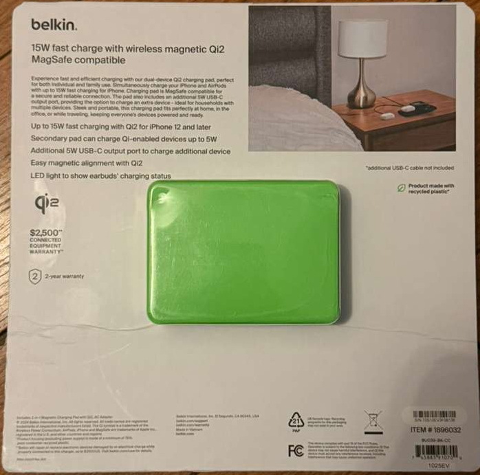 Belkin 2-in-1 Magnetic Wireless Charging Pad with Qi2 15W MagSafe iPhone Samsung