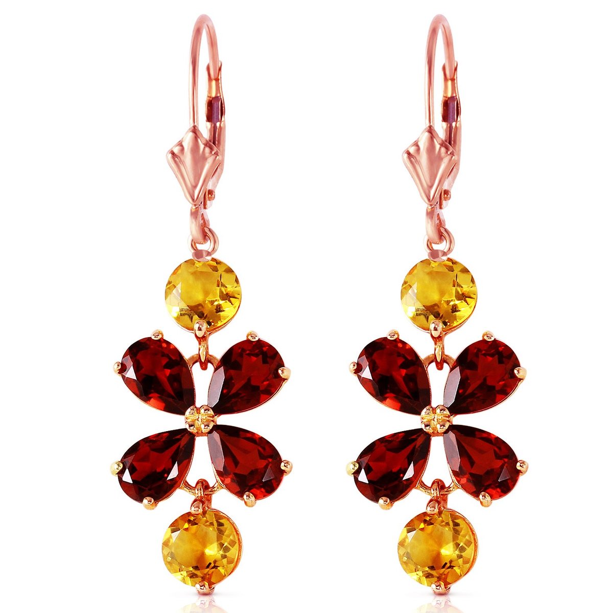 Galaxy Gold GG 14K Solid Rose Gold Natural Garnet and Citrine Chandelier Earring