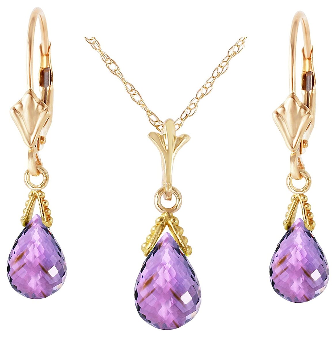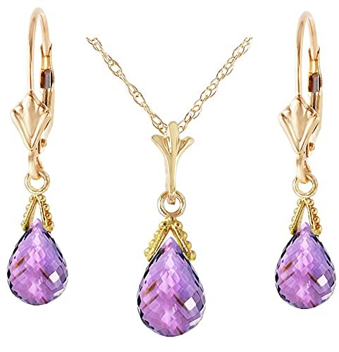 Galaxy Gold GG 14K Solid Yellow Gold Natural Amethyst Necklace and Earring Set f
