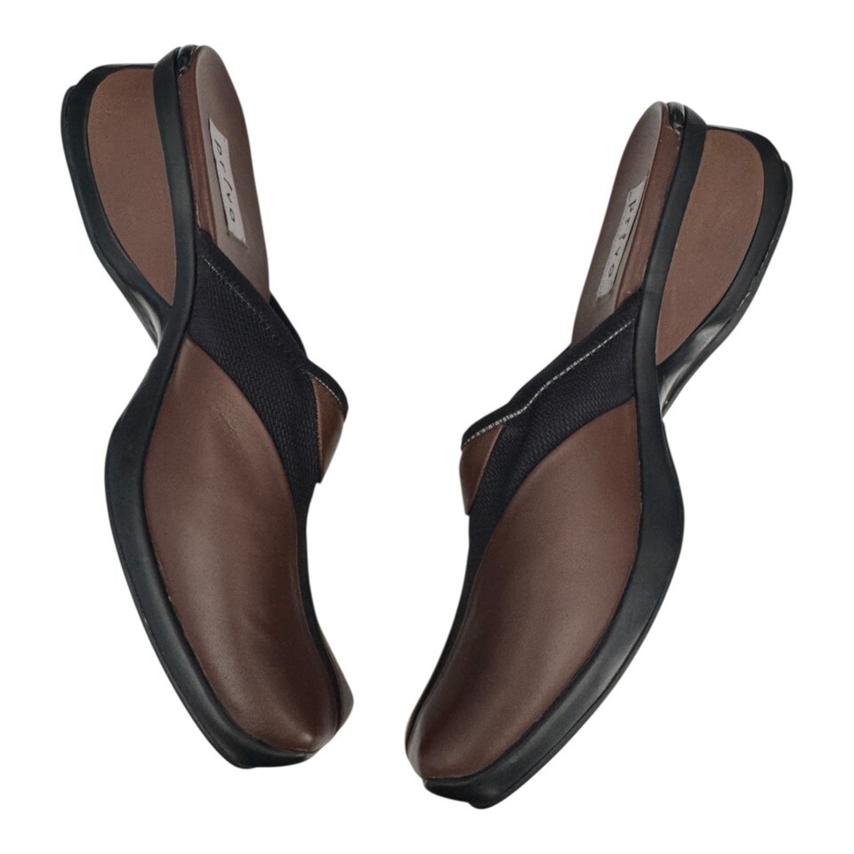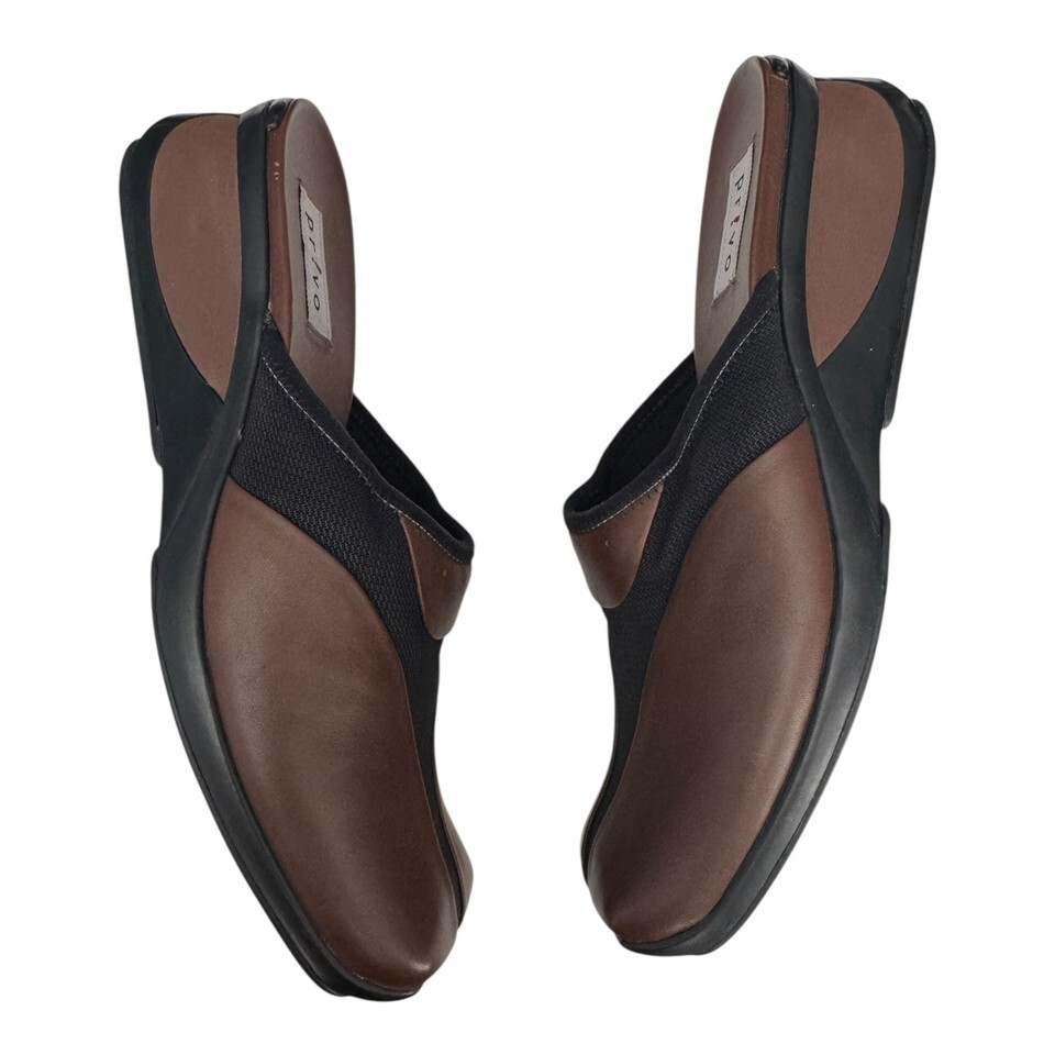 Privo Shoes Womens Size 9M Brown Black Slip On Comfort Clogs Mules Leather