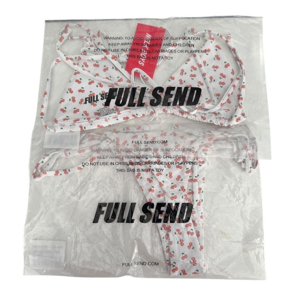 Full Send Cherry Bikini Set Womens Small White Red Two Piece Swimsuit Swimwear