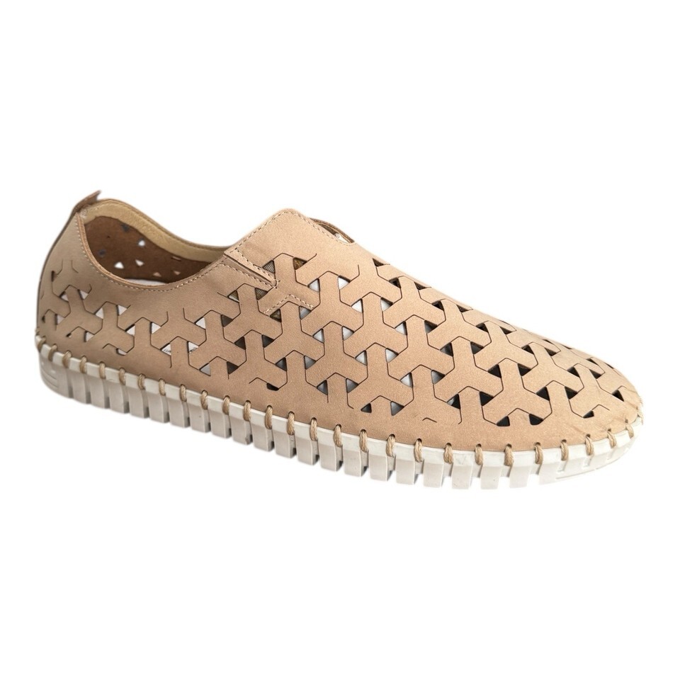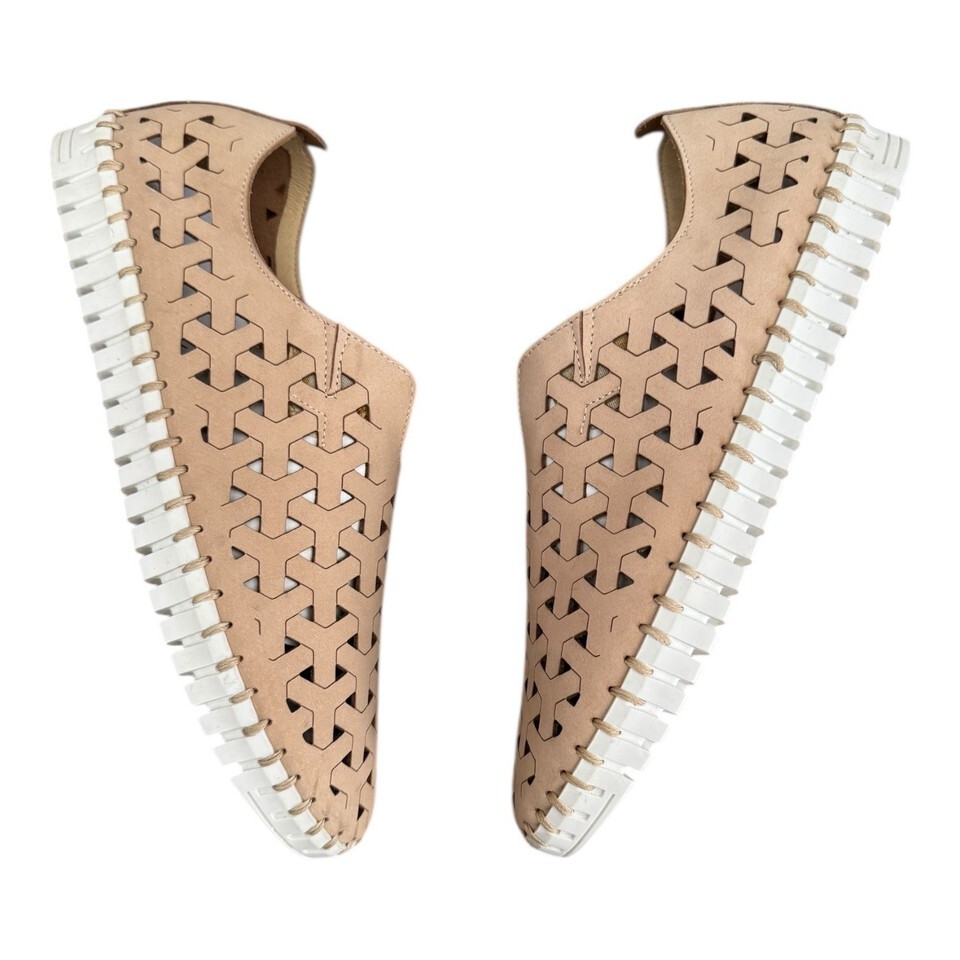 Eric Michael Inez Beige Leather Perforated Slip-On Shoes Women’s 9/EU 40