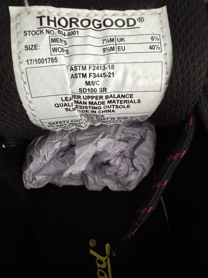 Thorogood Crosstrex Series Men’s 7.5/Women’s 9.5 SD Oxford Black/Red Safety Toe
