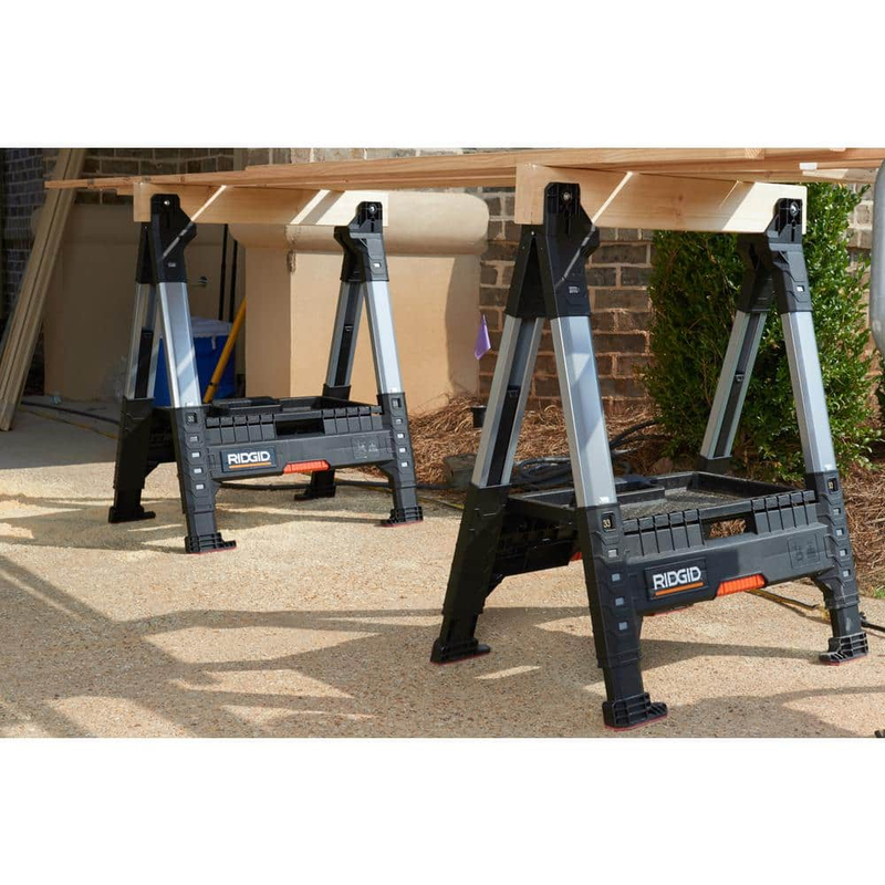32 In. Polypropylene Folding Sawhorse with Adjustable Heavy Duty Metal Legs, 3000 Lbs. Capacity
