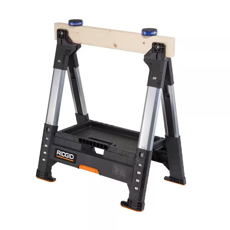 32 In. Polypropylene Folding Sawhorse with Adjustable Heavy Duty Metal Legs, 300