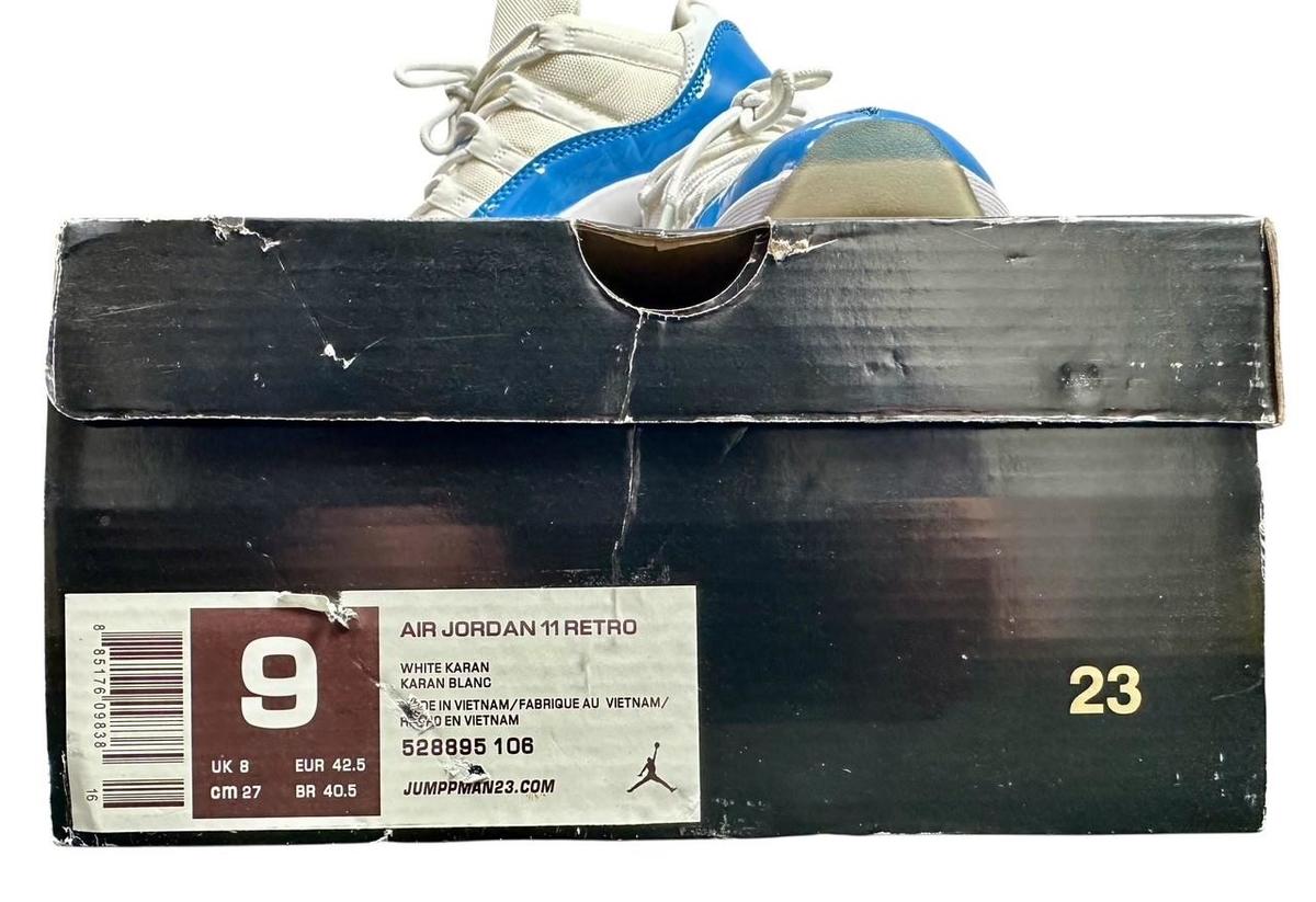 Air Jordan 11 Retro White Karan 528895-106 Sneakers Men's Size 9 Original Box Previously owned and has a scratch otherwise in very good condition We guarantee authenticity on all of the items we sell Comes as shown