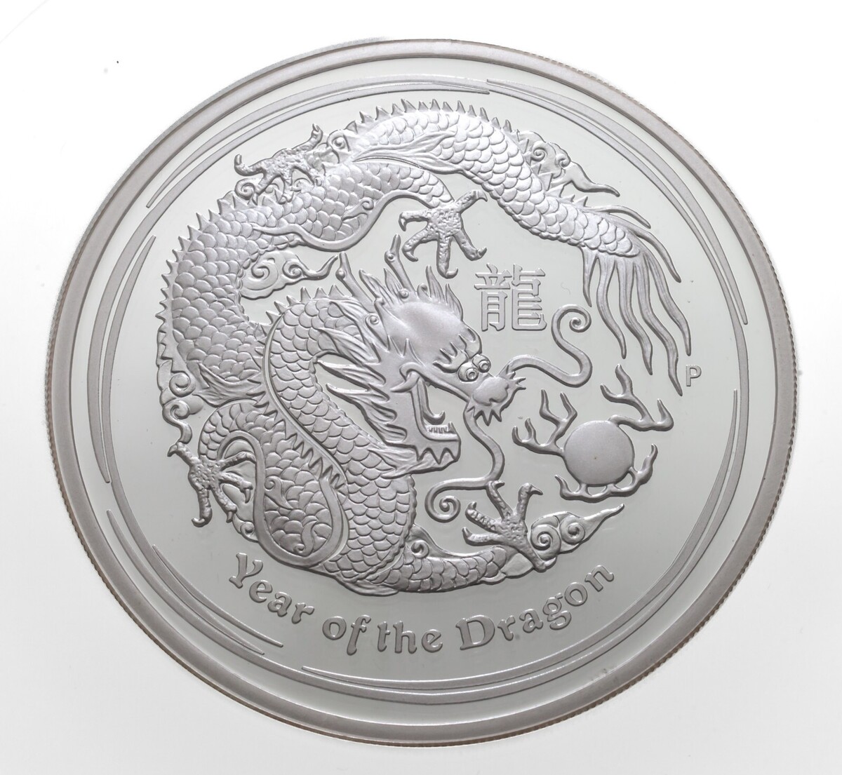 Moneda De Plata BU De 1 Oz Del Año Lunar Del Dragon 1 Dolar Australia 2012