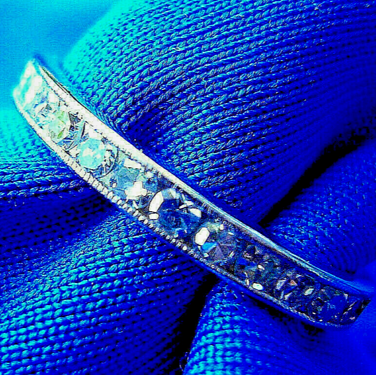 ELEGANT NATURAL EARTH MINED DIAMOND PLATINUM ORIGINAL DECO BAND.