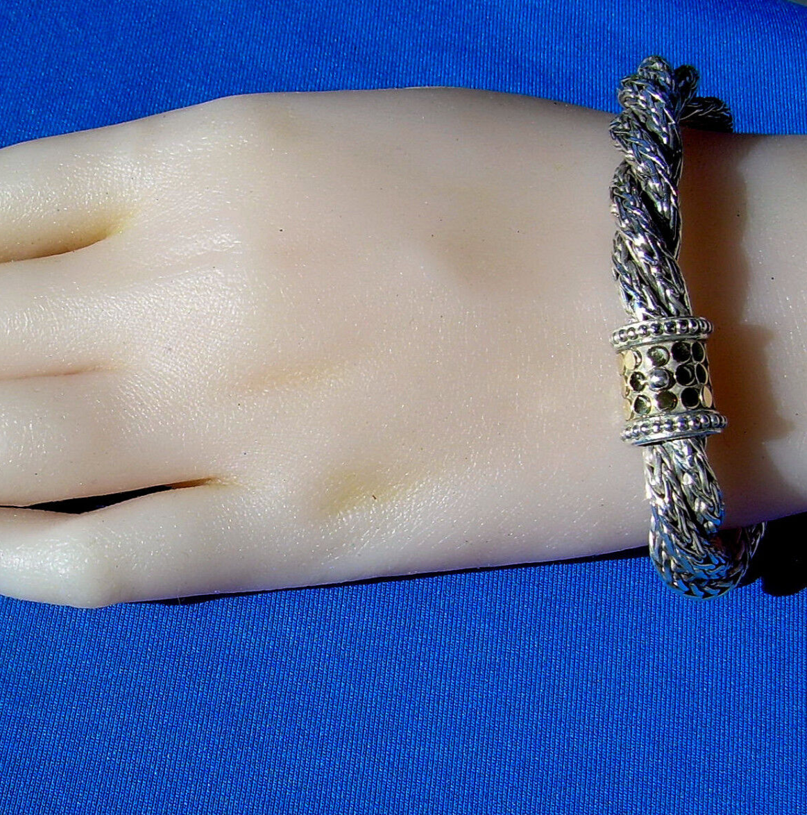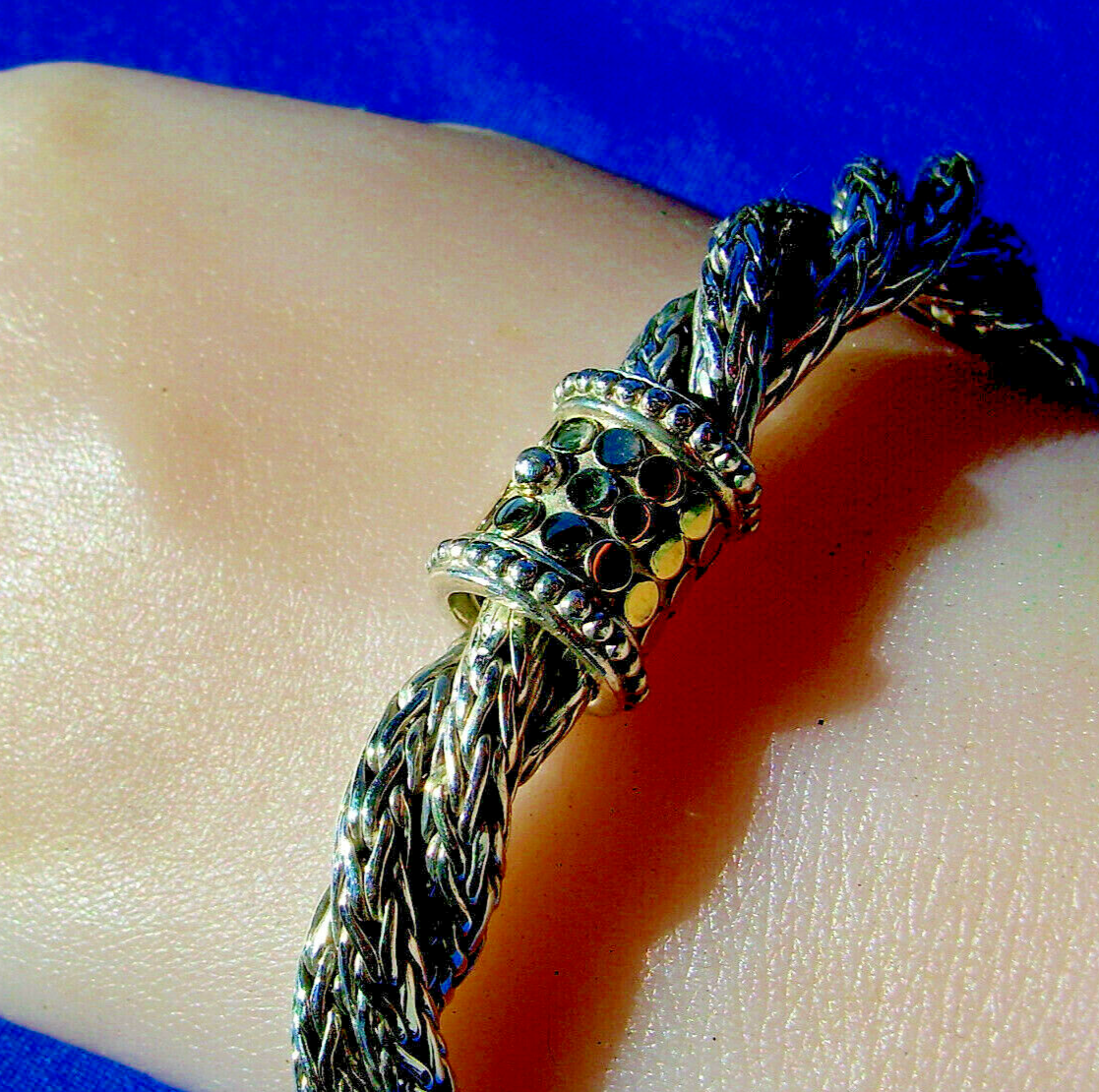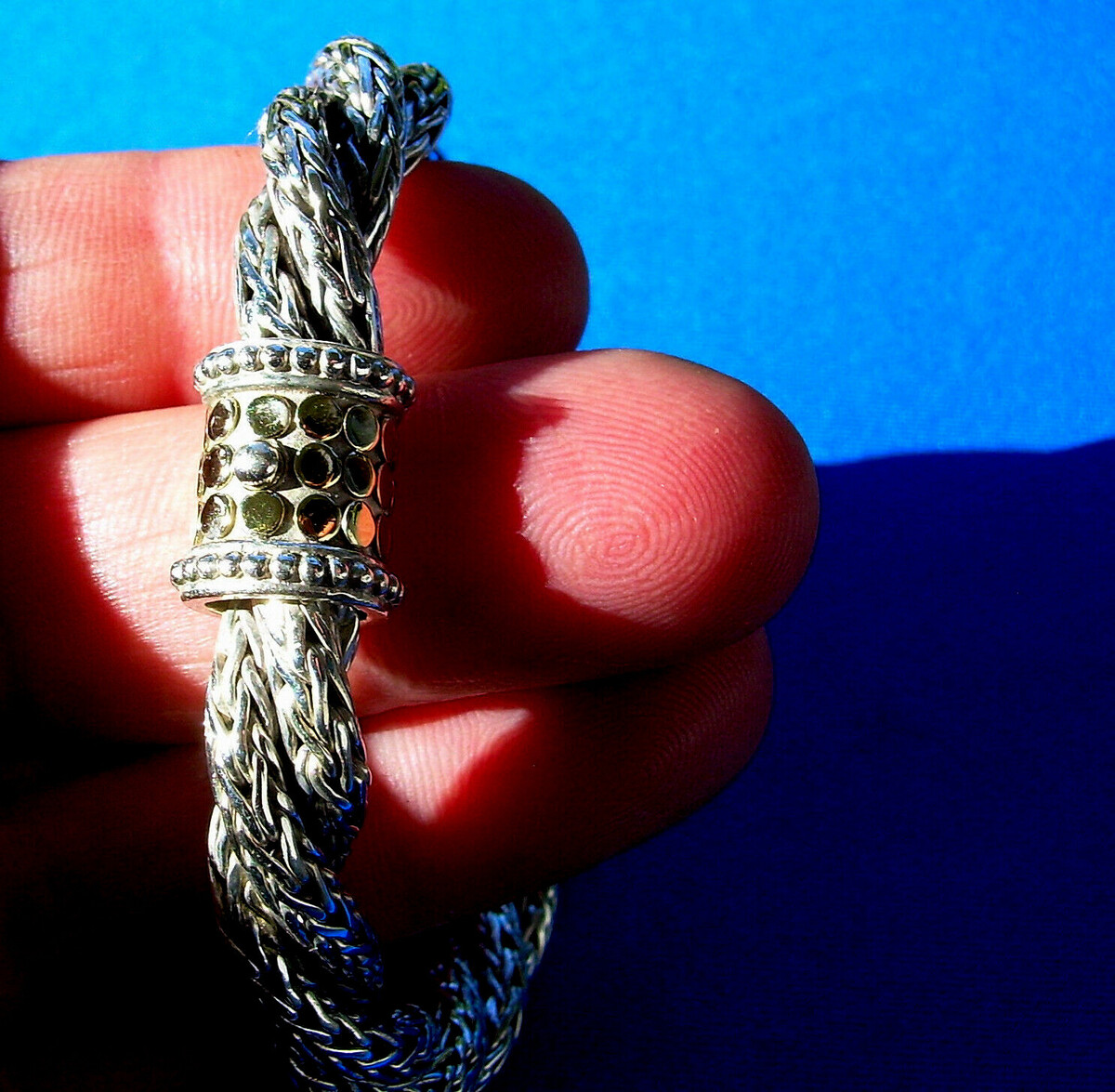 ORIGINAL JOHN HARDY Woven Chain 18K GOLD Dot STERLING SILVER 925 Bracelet 8" in