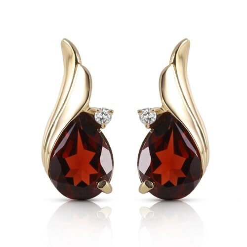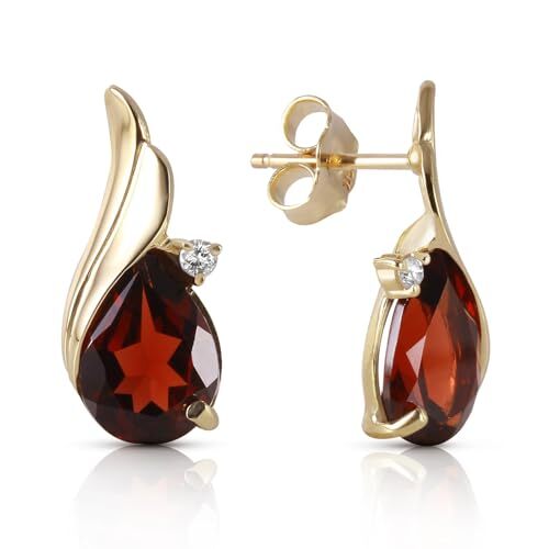 Galaxy Gold GG 14K Solid Yellow Gold Natural Diamond and Garnet Stud Earrings fo