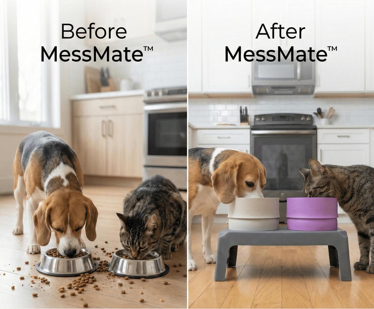 MessMate was created to help pet owners keep feeding areas cleaner and reduce the daily mess caused by excited eaters and sloppy drinkers.