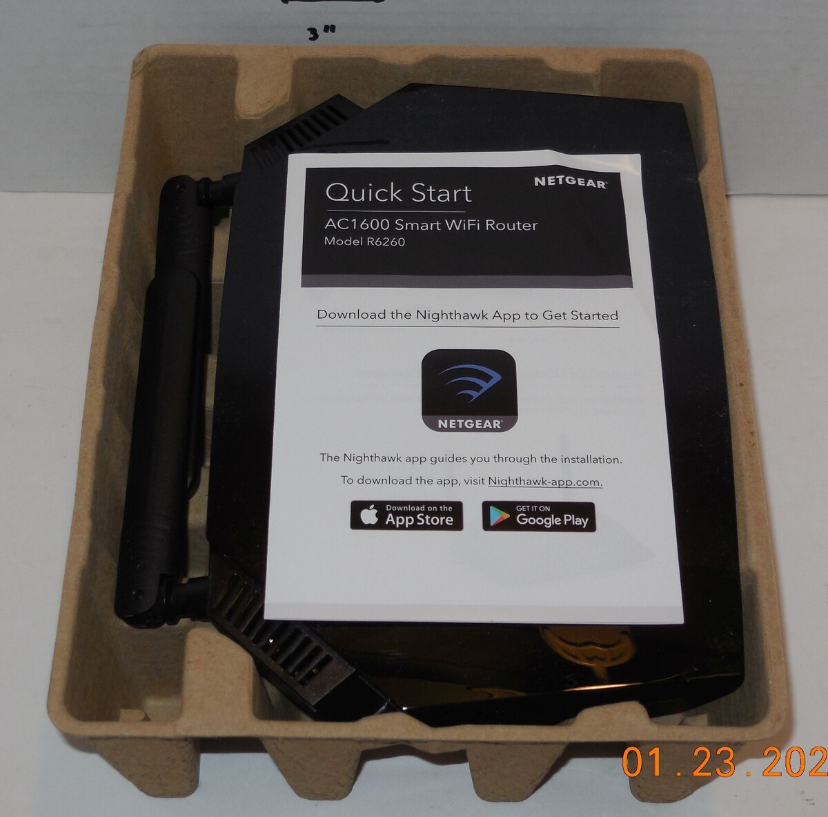for sale is for a NETGEAR AC1600 Dual-Band Smart Wi-Fi Router R6260-100NAS Gigabit 4K Streaming. Its in good Condition As pictured. Please see pictures prior to purchasing. Please ask any and all questions prior to purchase. Fast same or next day shipping with Delivery Confirmation.