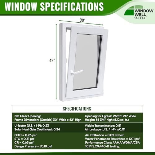 Tilt & Turn Basement Egress Window - 30"W x and 10 similar items
