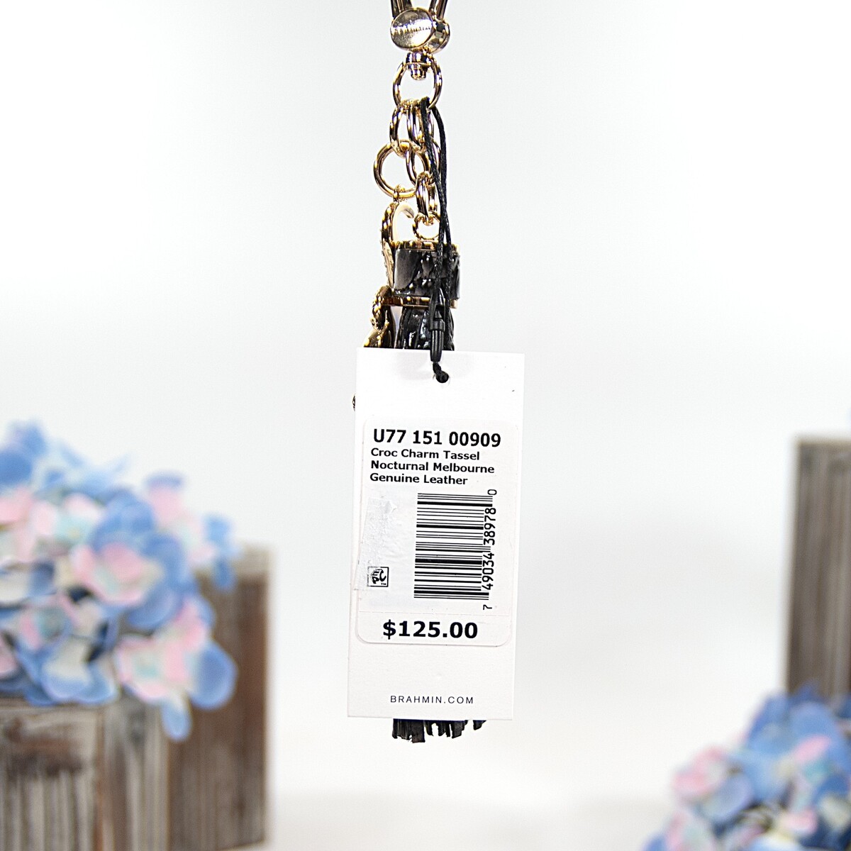 Brahmin Nocturnal Melbourne Leather Crystal Crocodile Charm Tassel Bag Charm NWT