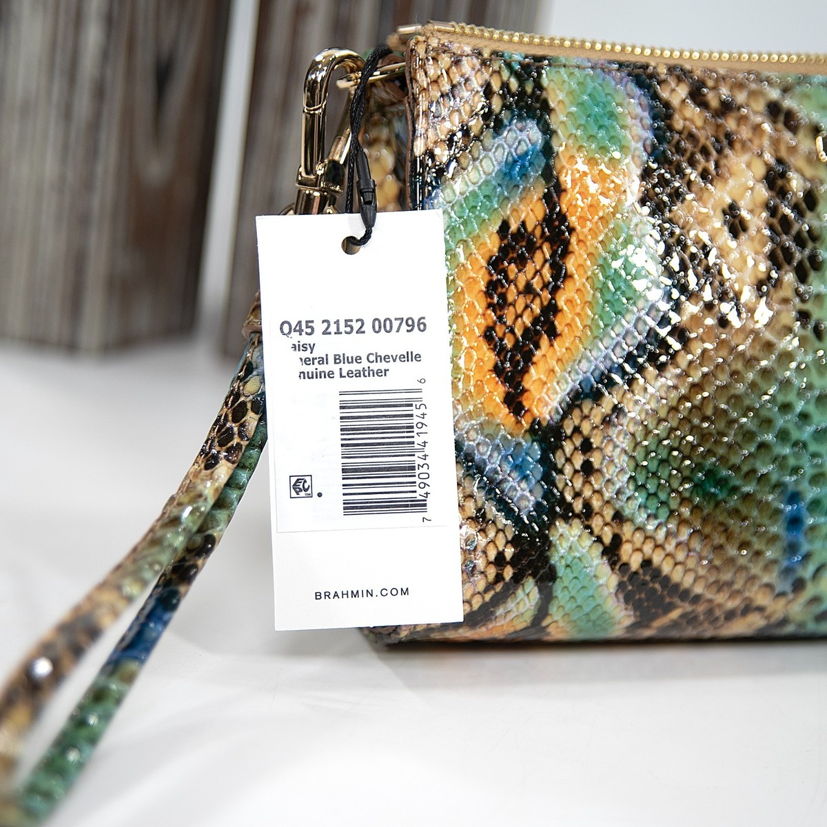 Brahmin Mineral Blue Chevelle Leather Daisy Clutch Wristlet NWT