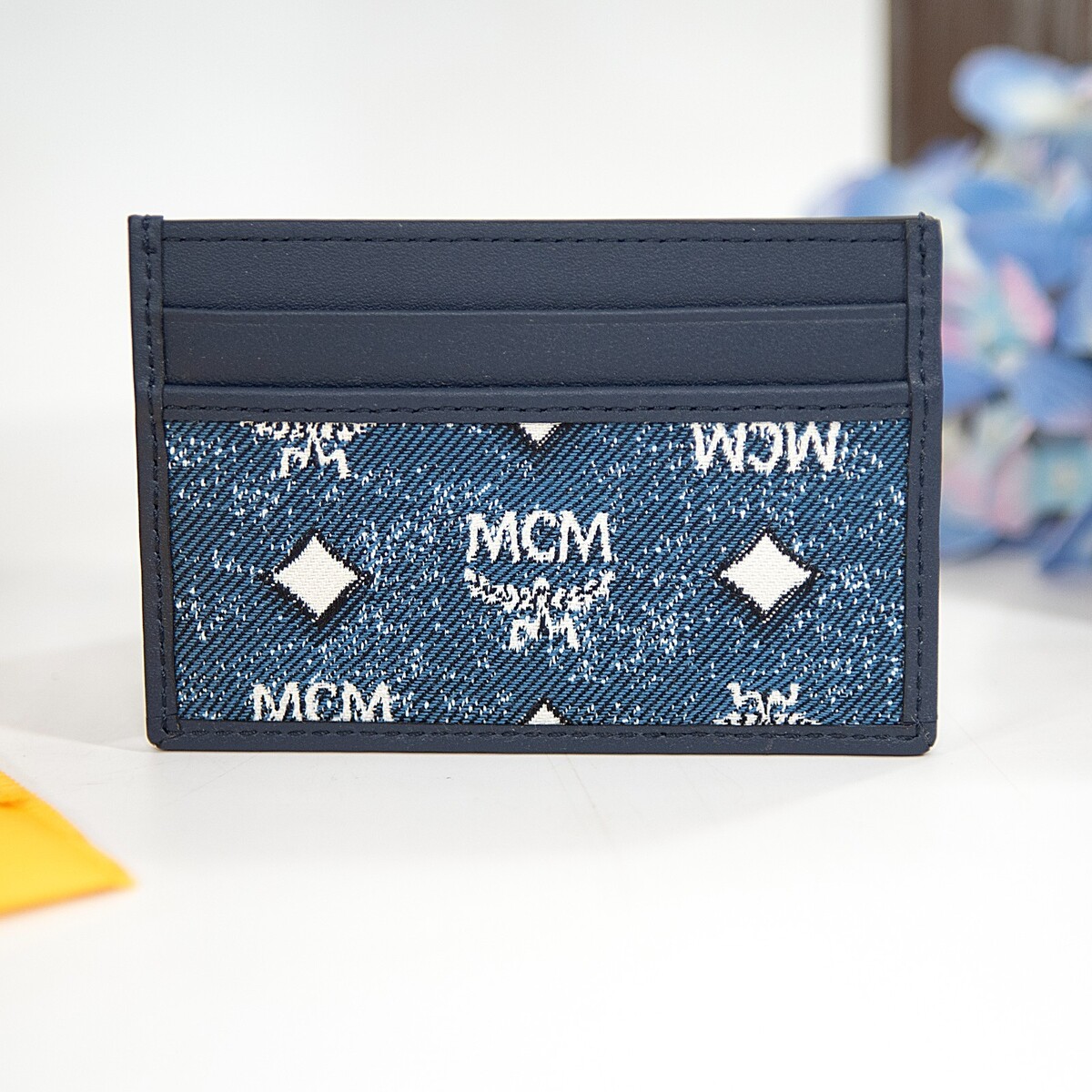 MCM Navy Blue Vintage Jacquard Monogram Visetos Leather Card Case Holder NWT