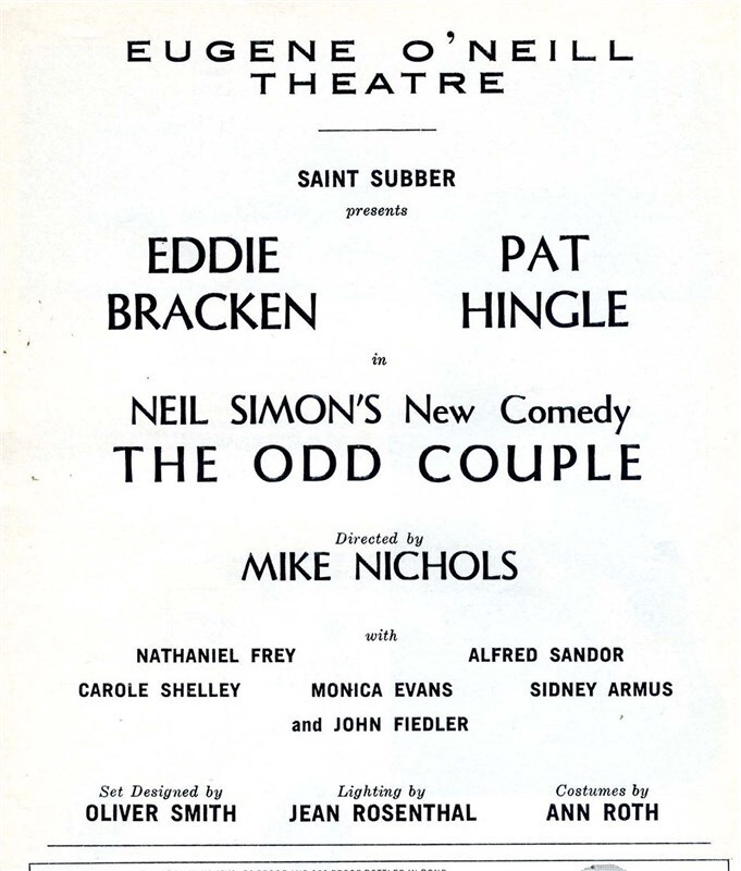 Playbill Neil Simon's The ODD COUPLE 1966 Pat Hingle Eddie Bracken