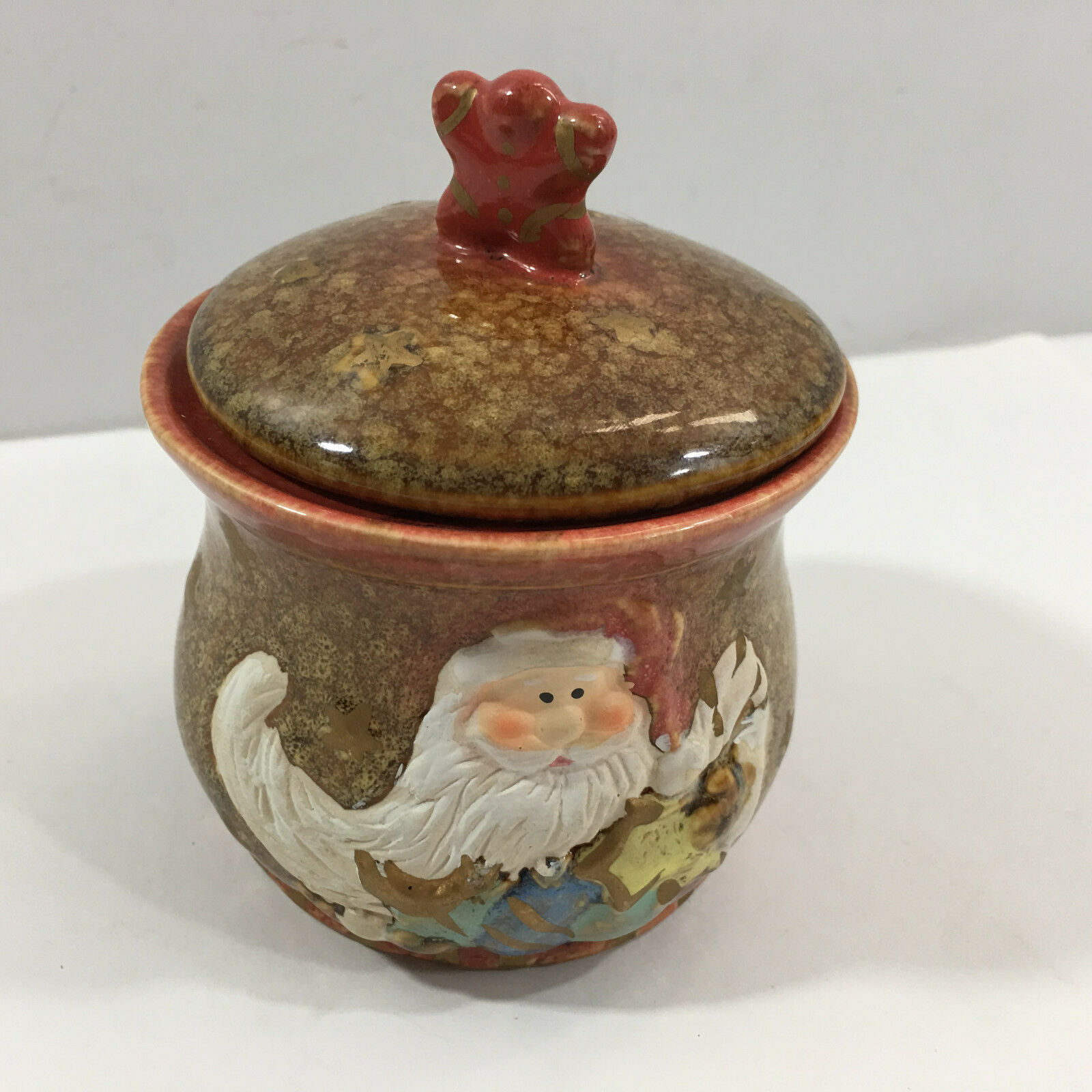 Greebrier International Santa Claus Ceramic Mini-Jar (with Cookie Man on Lid)