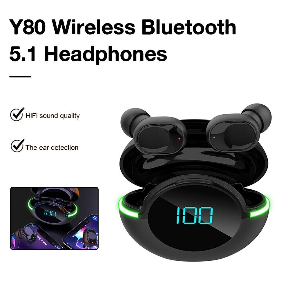 Wireless Bluetooth 5.1 Headphones Earphones Earbuds ear Y80 TWS SHIP FROM USA