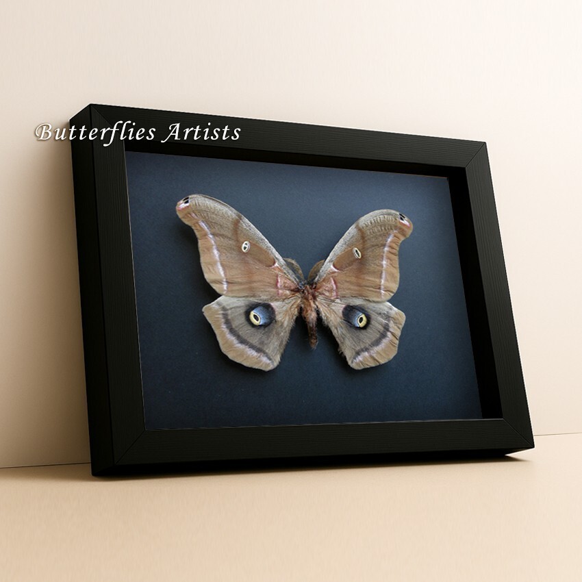 Purplish Eyespot Antheraea Polyphemus Real Silk Moth Framed Entomology Shadowbox
