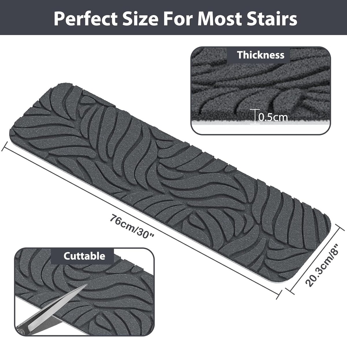 Customizable Size: Trim to fit your specific staircase dimensions, ensuring a perfect fit every time.
