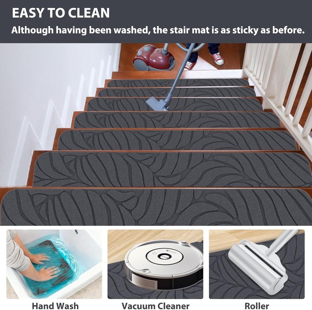 No Adhesive: Made of self-adhesive, absorbent material that leaves no harmful residue on your staircase.
