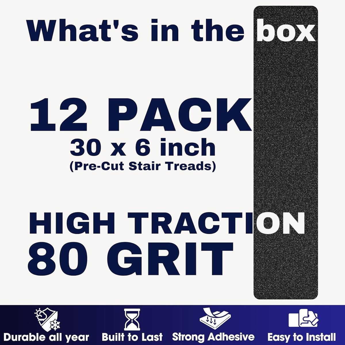30" x 6" Waterproof 80-Grit Grip Strips ? 12-Pack Anti-Slip Stair Treads
