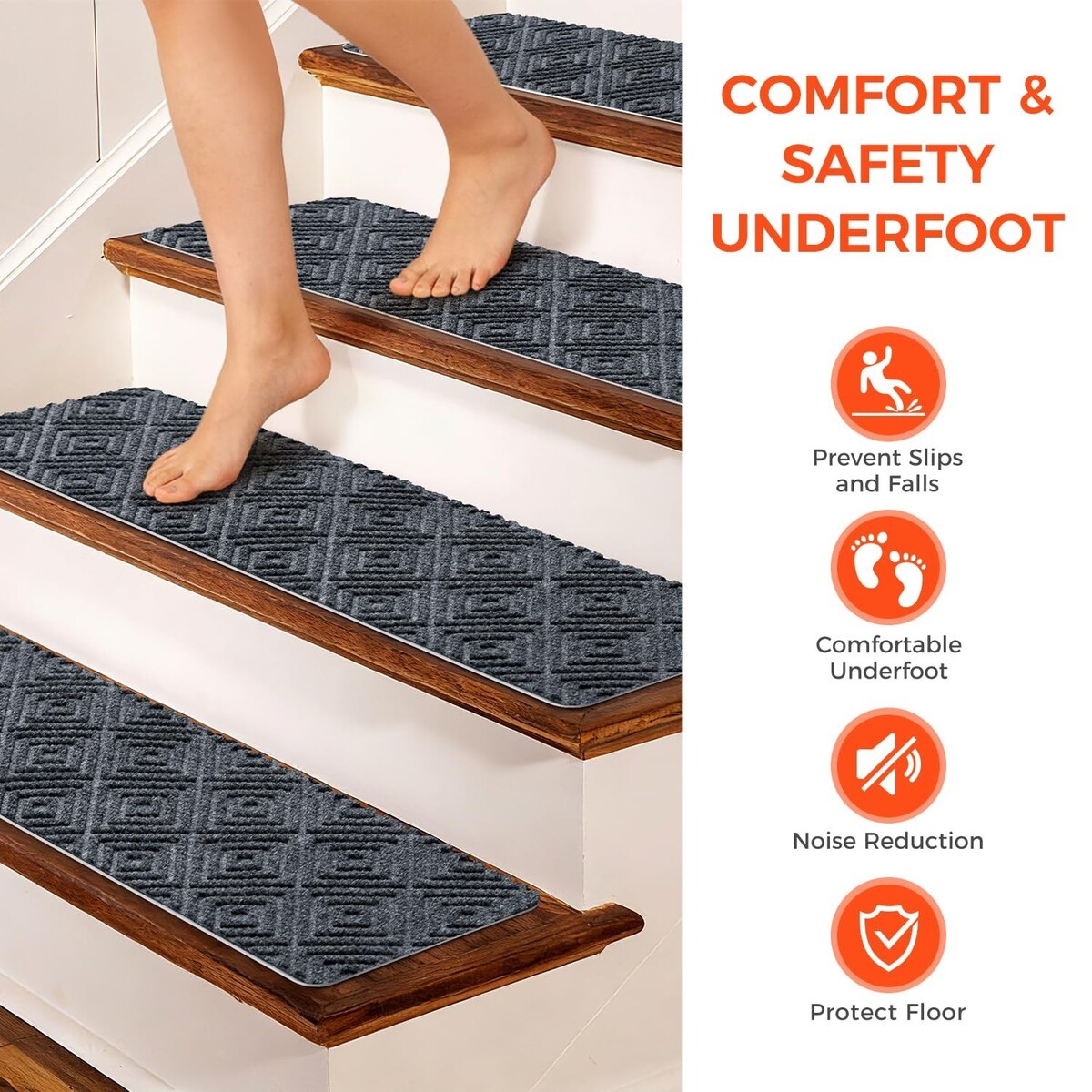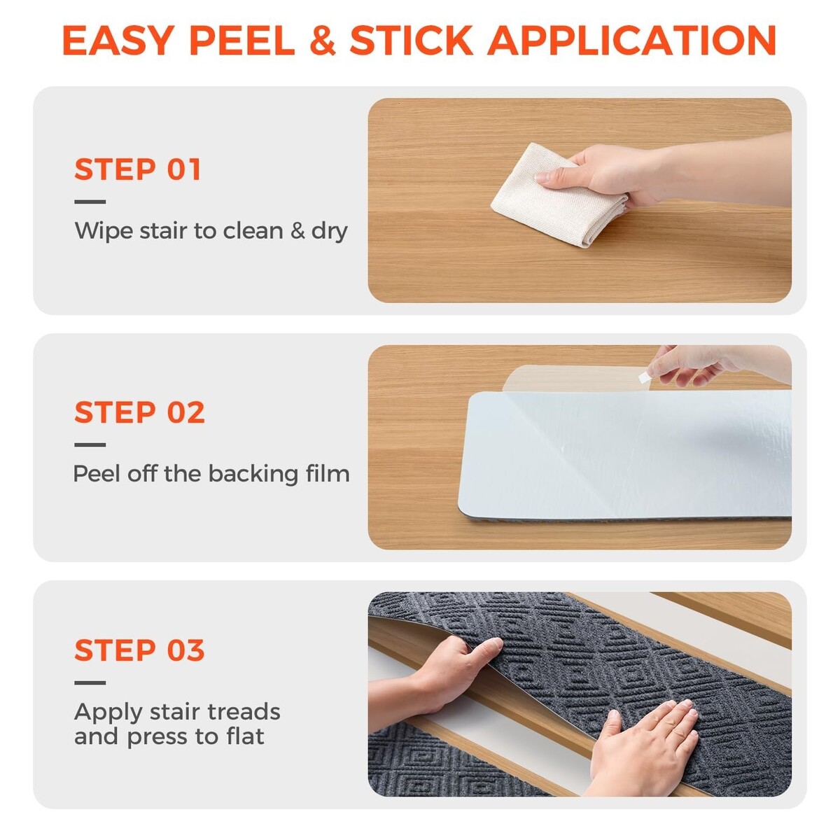 8"x30" Peel and Stick Non-Slip Carpet Stair Treads