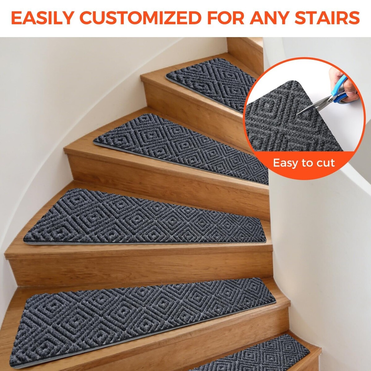 8"x30" Peel and Stick Non-Slip Carpet Stair Treads - Durable Washable Covering