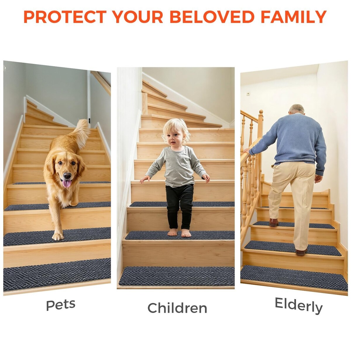 Transform your home into a safe and cozy haven with our 8"x30" Peel and Stick Non-Slip Carpet Stair Treads. Designed for ultimate slip prevention, these treads ensure peace of mind for your entire family?whether you have adventurous toddlers, aging family members, or furry friends. Thanks to the easy, no-tool installation, you can enhance your home's safety in just minutes.