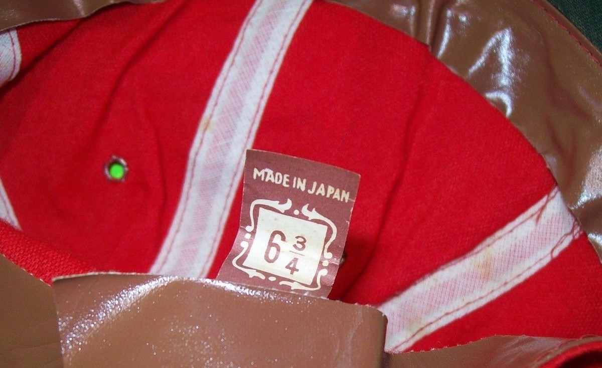 Set of (3) new old stock never worn hats. Cloth fabric. They appear to be 1960s-1970s stock. Baseball cap hat with Junior League patch on front. All are red color. Two have dark blue brim and button top. One has aqua/green/blue brim and button top. One of the dark blue brim hats has small seam tear on side. Some slight discolor marks on the patch can be seen. One has the original tag inside intact. "Made In Japan 6 3/4". One of these tags has fallen off and is semi torn but is included. The inside of hats have vinyl tape edging which is wavy and wrinkled due to age. From smoke free home.