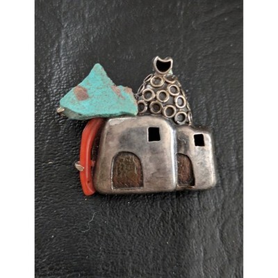 VintageAzz Fahmy Houses Of Nile Sterling Silber Türkis gyptische Nubische Pin Brosche. Dieses einzigartige Stück besteht aus einem grob geschliffenen türkisfarbenen Stein als Baum- oder Dachelement sowie einem leuchtend roten Korallenzweig. Der silberfarbene Korper weist aufwendige Filigranarbeit an der Kuppel und den ausgeschnittenen windows auf, wahrend die Rückseite zwei deutliche goldfarbene kalligraphische Stempel aufweist. Ein wunderschones Beispiel für handgefertigten Ethno-Schmuck mit sicherer Nadelrückseite. Maße: ? Hohe: 1,25" ? Breite: 1,5"