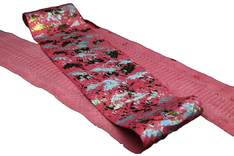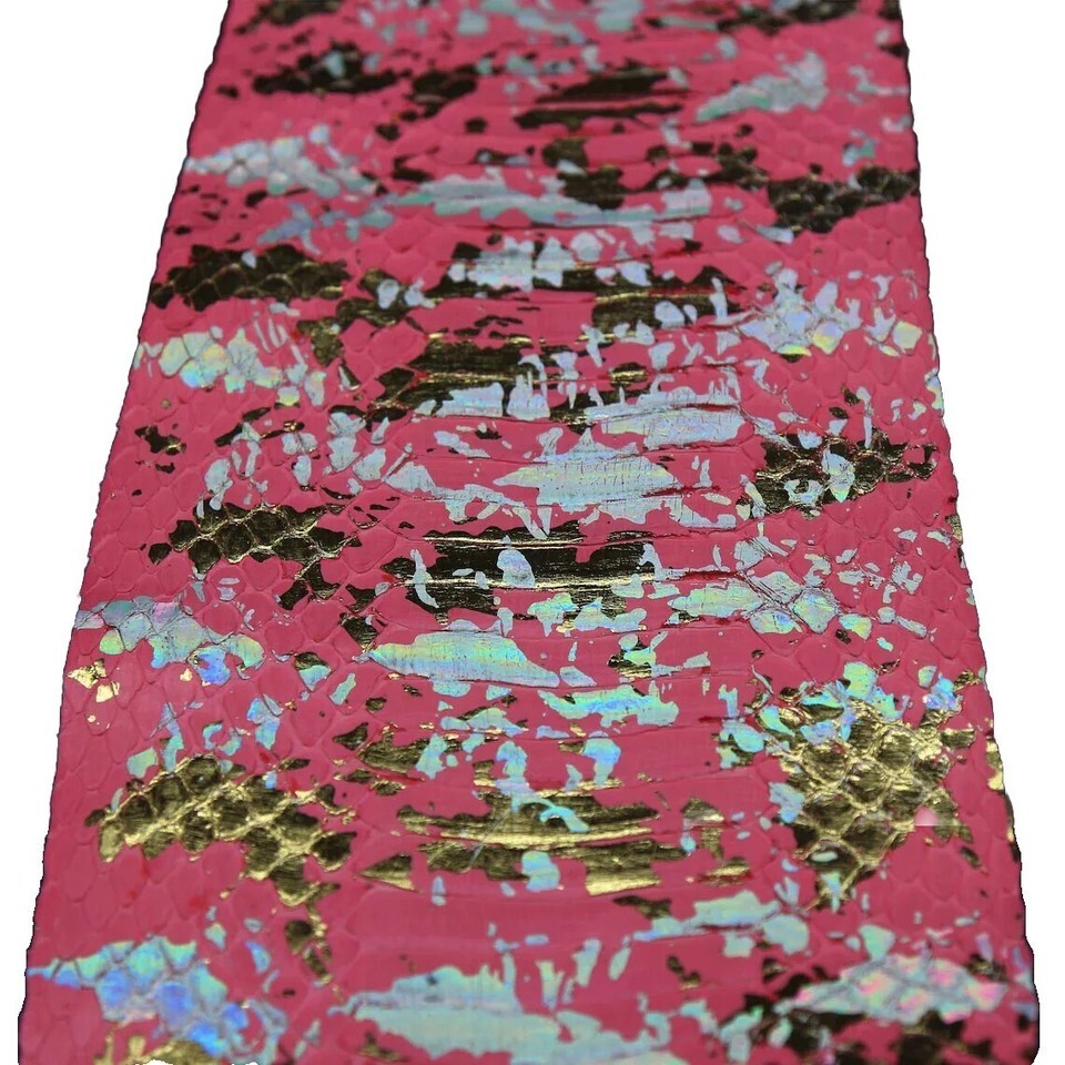 Spalash Snake Skin Hide Leather Snakeskin Craft Supply Metallic Pink