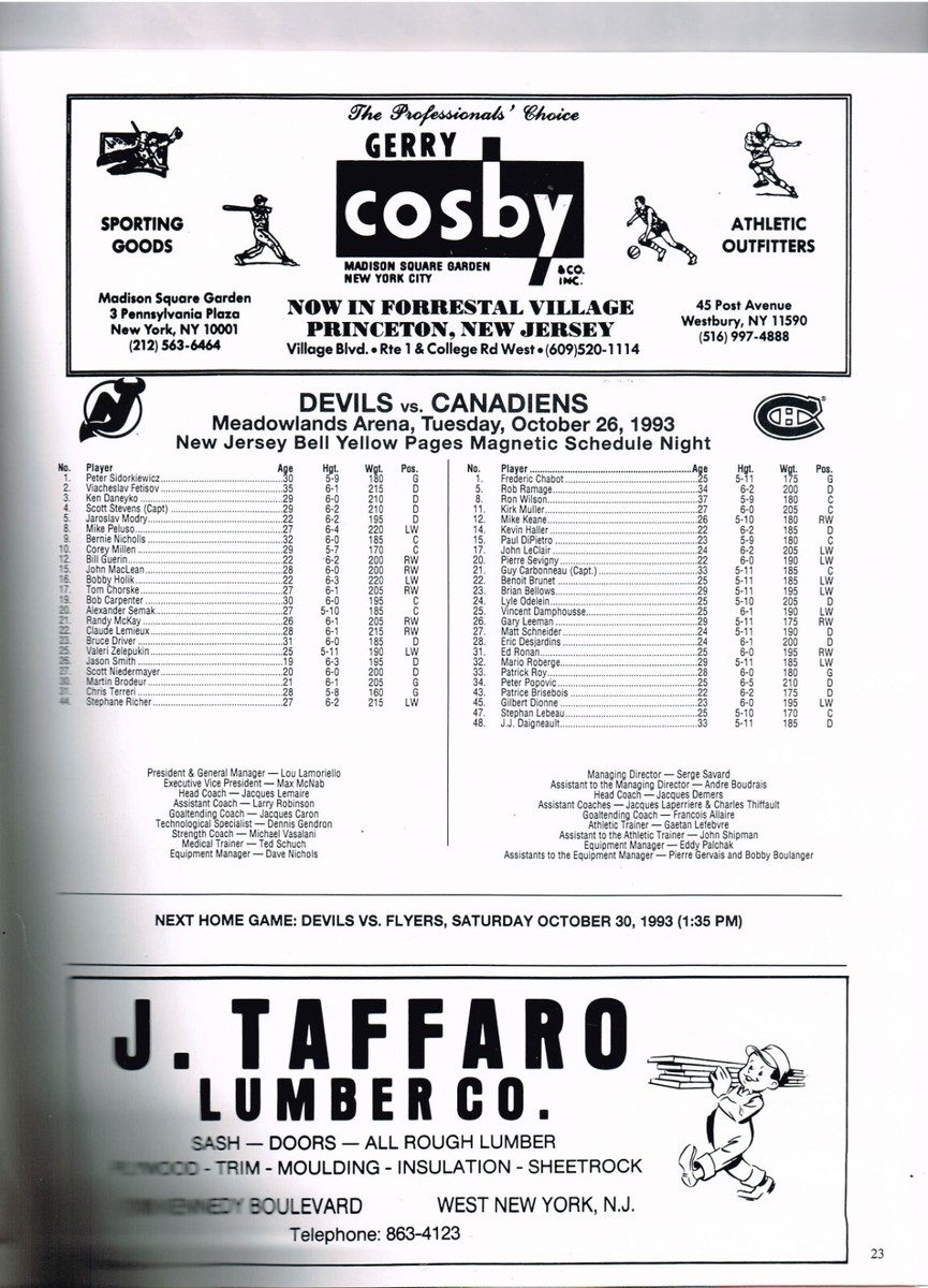 1993-94 New Jersey Devils Game Montreal Canadiens 10/26/93 |