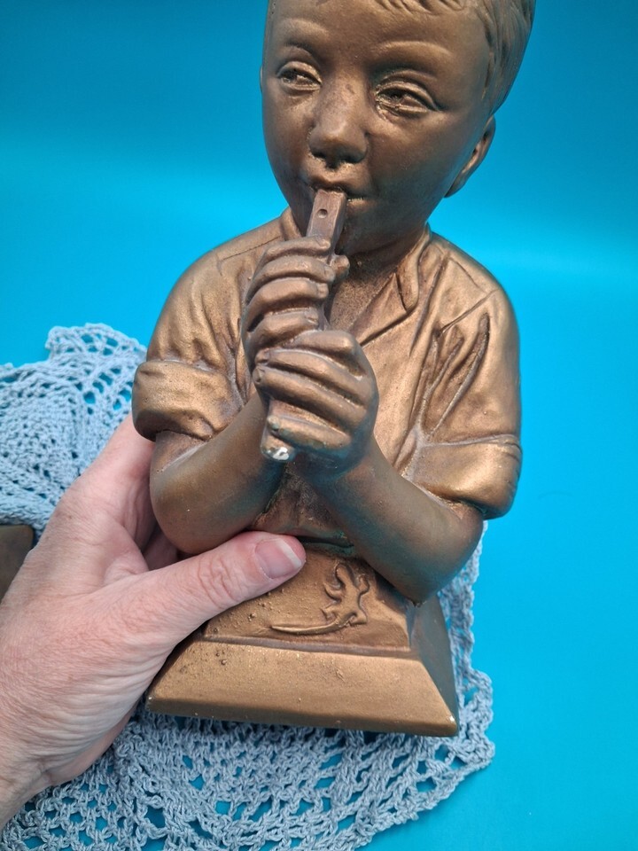 Whimsical Boy Girl Signed Chalkware Esco 1950's Flute Ears