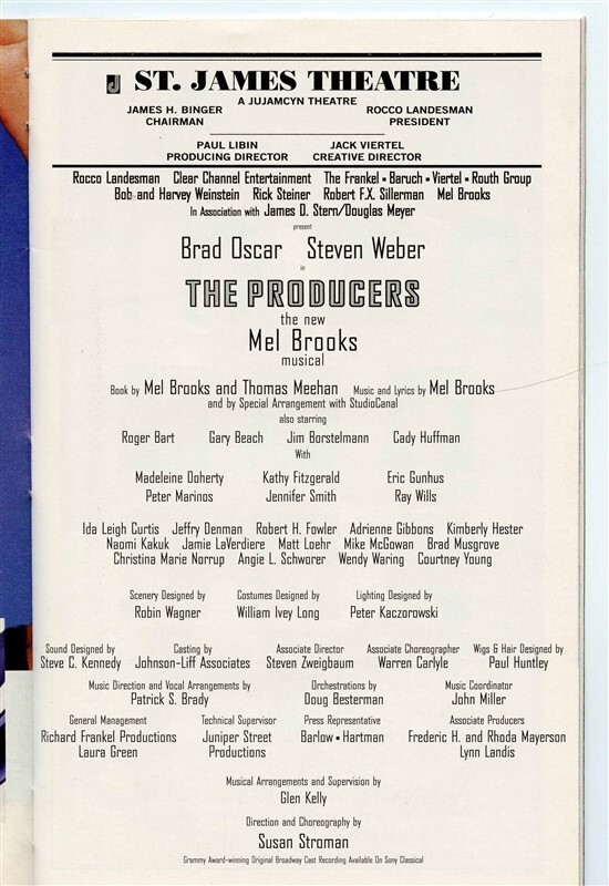 Mel Brooks The Producers Playbill St James Theatre 2002 Brad Oscar Steven Weber