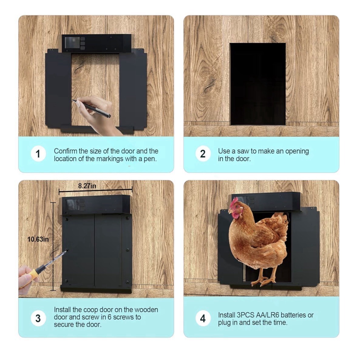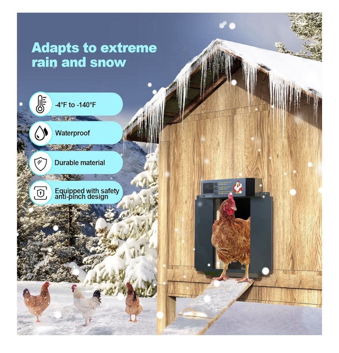 The CKAIJHIEG Automatic Chicken Coop Door is an automated door opener designed to make managing your chicken coop easier. Here's what it offers: