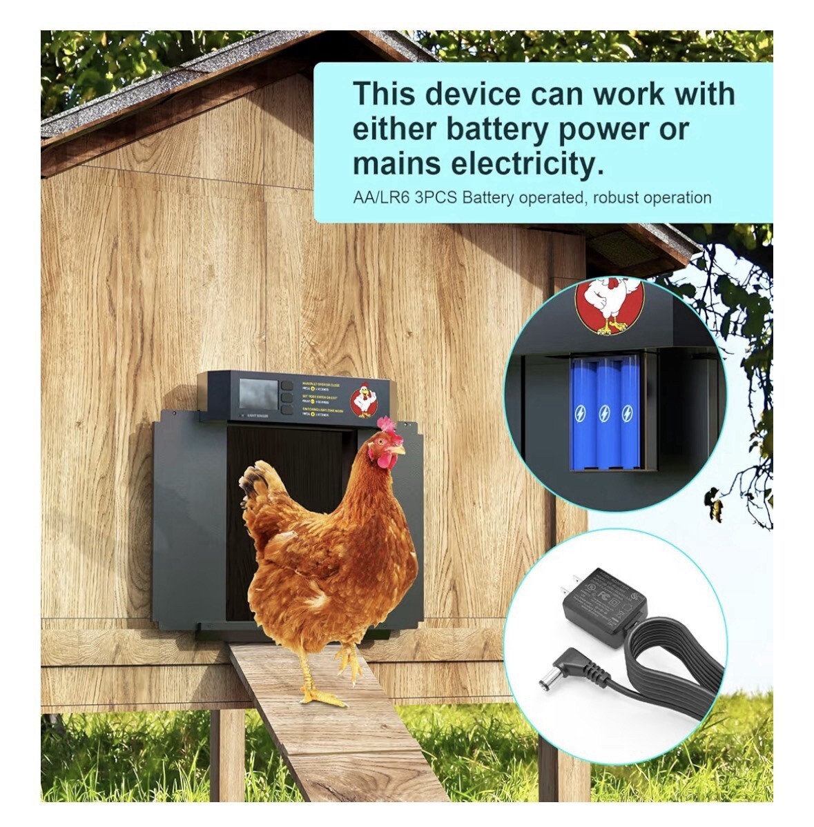 Chicken Coop Door Large LCD Display Timer & Light Sensor Anti-Pinch Protection