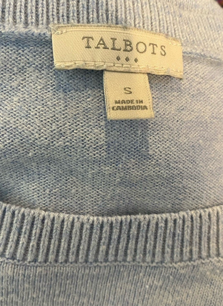 Talbots Light Blue Sea Horse Long Sleeve Cotton Pullover Sweater Size S