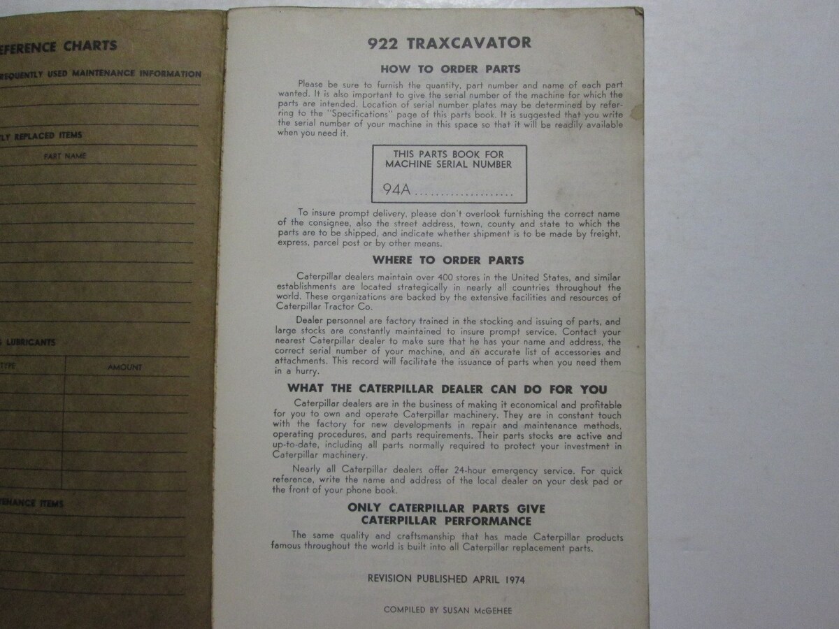 Libro delle parti del Traxcavator Caterpillar 922