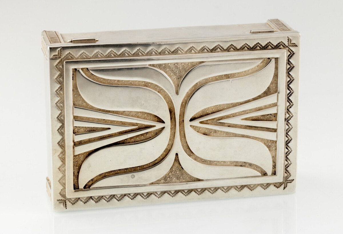 Kenneth Begay Signed Navajo Sterling Silver Cigarette Box White Hogan Vintage