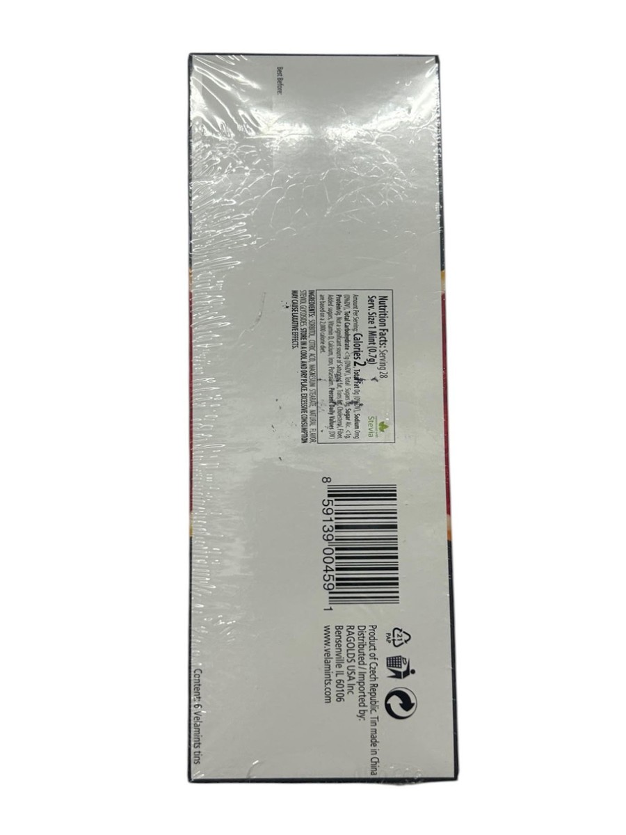 Velamints Sugar Free Blood Orange Mints Tin - Aspartame Free Stevia, 120g Pack 6