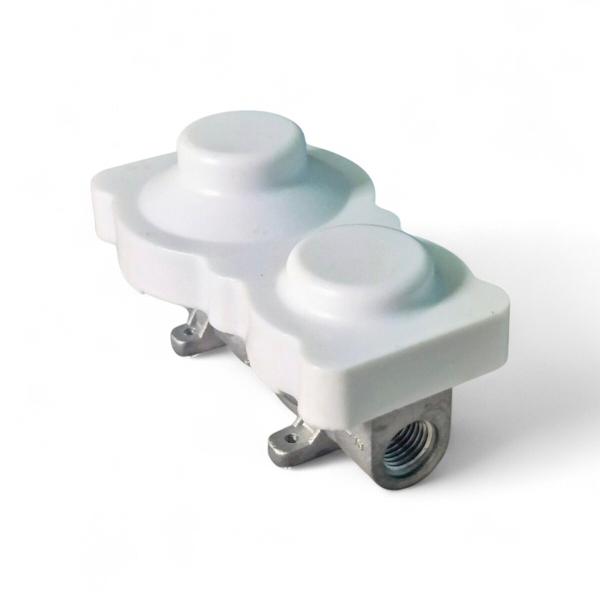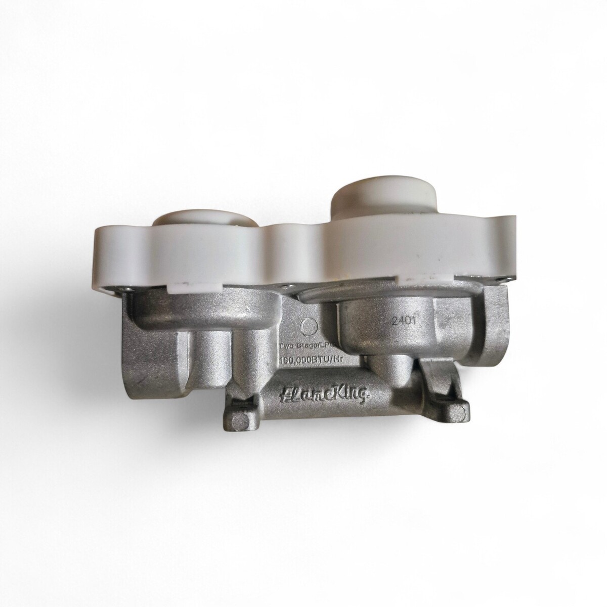 The Propane Gas RV Regulator Valve Connection 2-Stage with Rain Cover is a small, white steel replacement grill part designed for outdoor living. It is a universal fit unit that is rust-resistant and features a 2-stage regulator for precise control of gas flow. The product includes a rain cover to protect the valve when not in use. Perfect for various appliances and manufactured in 2025, this regulator is lightweight at 0.5 lb and has dimensions of 2.5 inches in width, 2.5 inches in height, and 4.4 inches in depth.