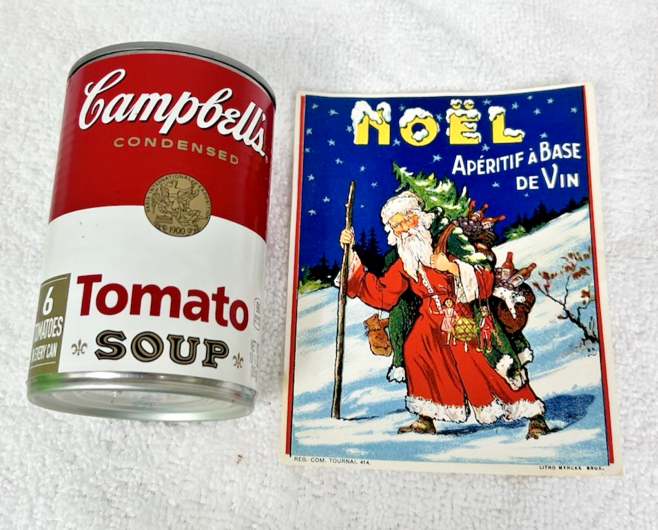 Vintage Belgian Litho Paper Santa Claus Noel Aperitif Base De Vin Wine Label. Great condition colorful lithographed wine label showing Santa Claus with a cane carrying bag of presents toys, Reg Com Tournai Litho Myncke Brux...appears to be a Belgian produced label wine appears to be French, label measures approx. 4" x 5 1/4", great condition, no tears, colors bright. See pictures.