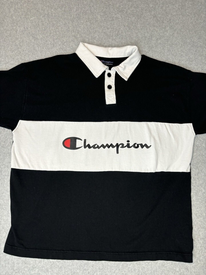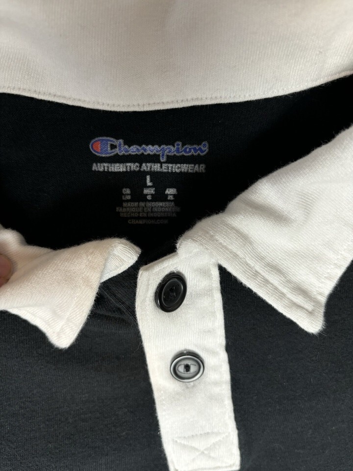 Champion Men's Powerblend Rugby Polo Short Sleeve Tee Shirt Black Size Large