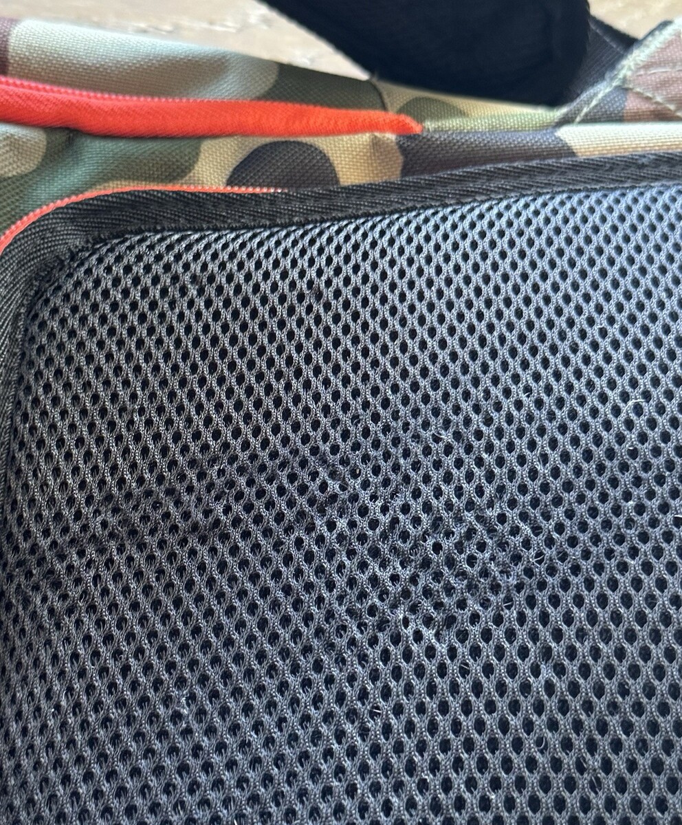 Very good pre-owned condition with a few minor marks on the inside - nothing serious and some minor rubbing on the back mesh padded pocket. The photos are useful for seeing condition and other details. Photos are of the actual item you will receive.